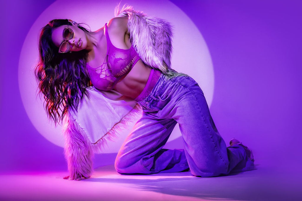 Romance meets seduction in this floral fishnet two-piece set. The bralette features a delicate floral pattern with a teasing crisscross detail across the bust, offering just the right touch of intrigue. The matching high-waisted panty is designed to flatter, with attached garter straps that extend down to connect with bold, round wide garter bands, creating a captivating silhouette from every angle.