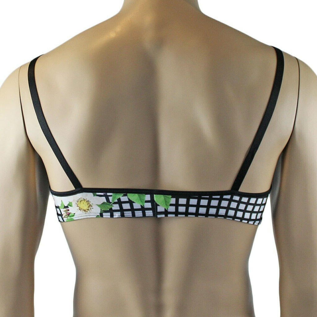 Mens Diana Bra Top & Thong in a Pretty Flower Checkered Print Spandex