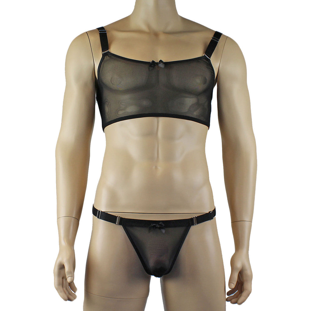 Mens Exotic Sheer Mesh Crop Bra Top Camisole & G string - Sizes up to 3XL Black