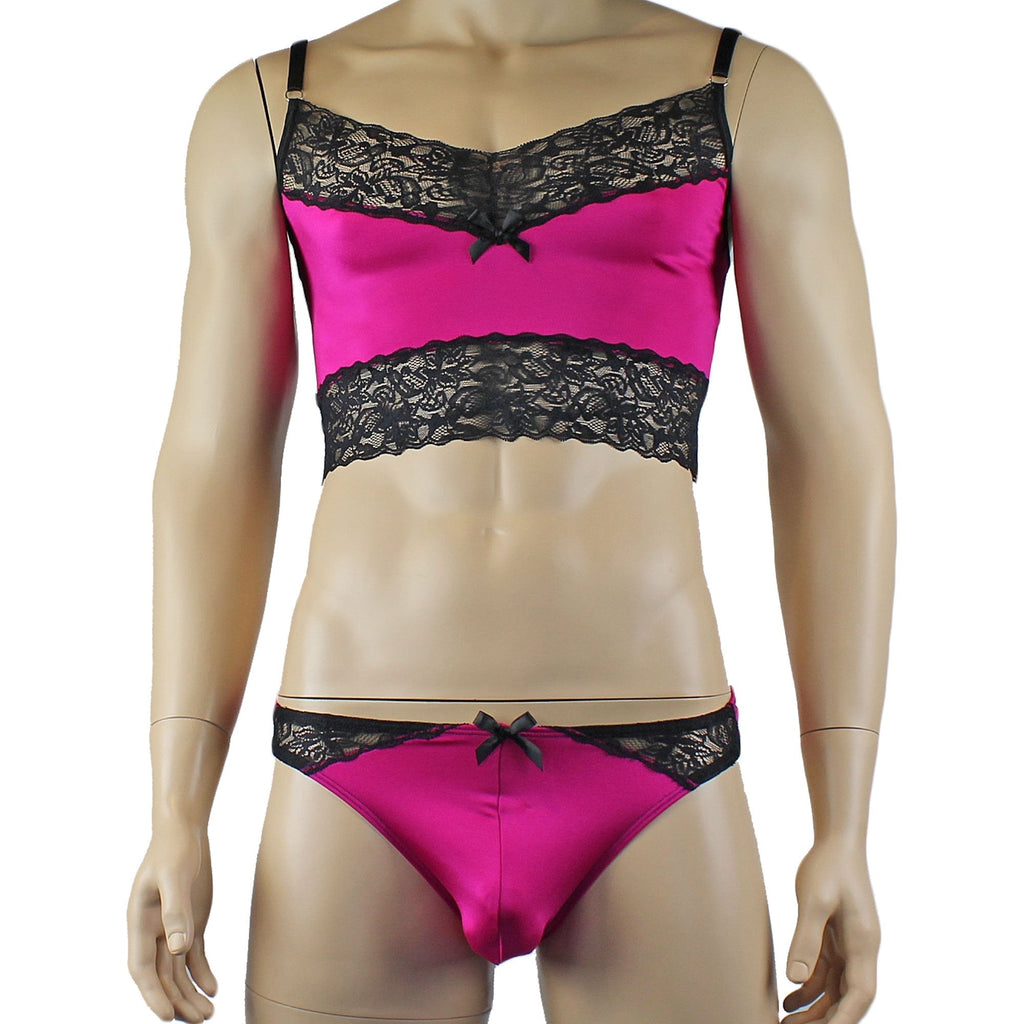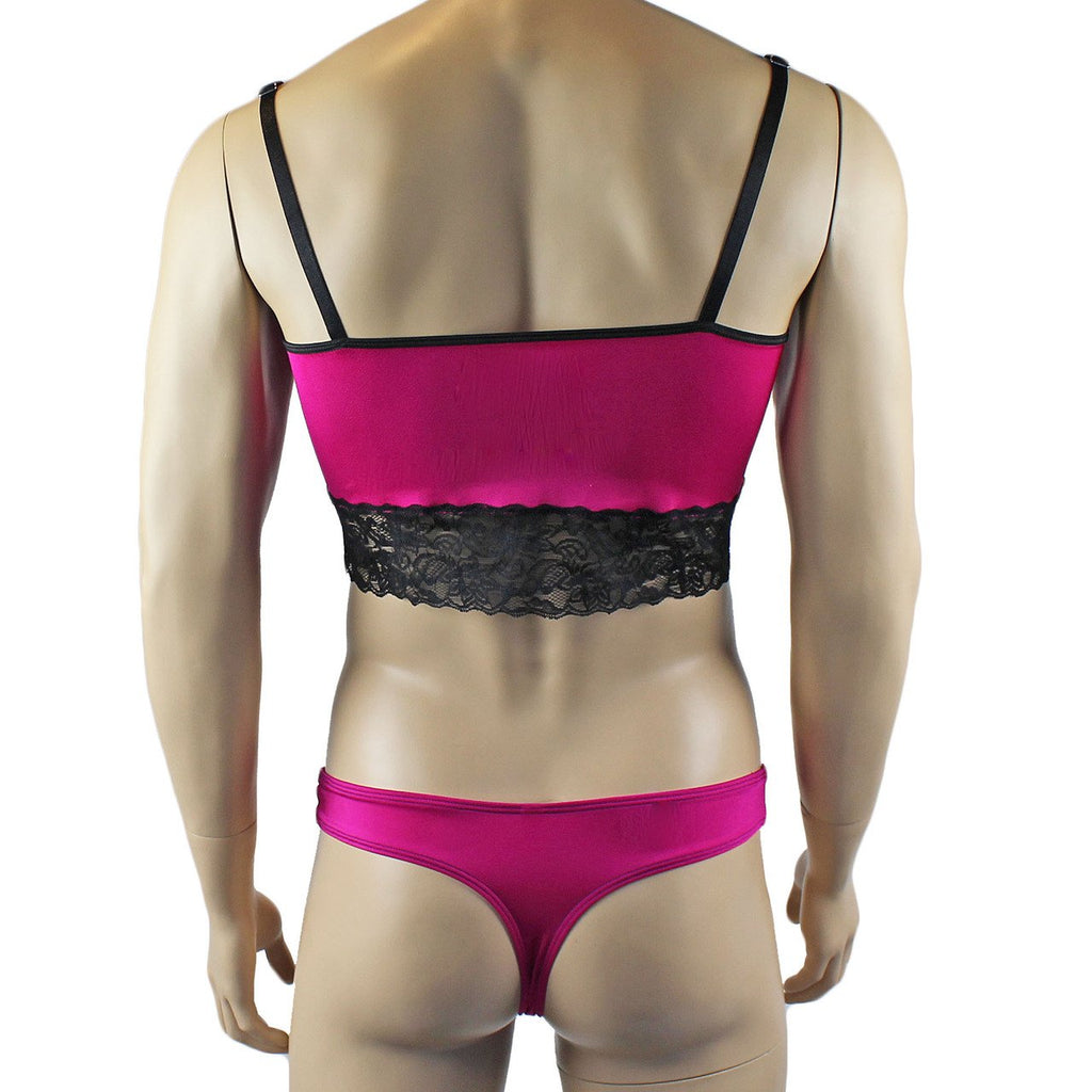 Mens Glamour Camisole Top with High Waist Thong- Sizes up to 3XL Raspberry