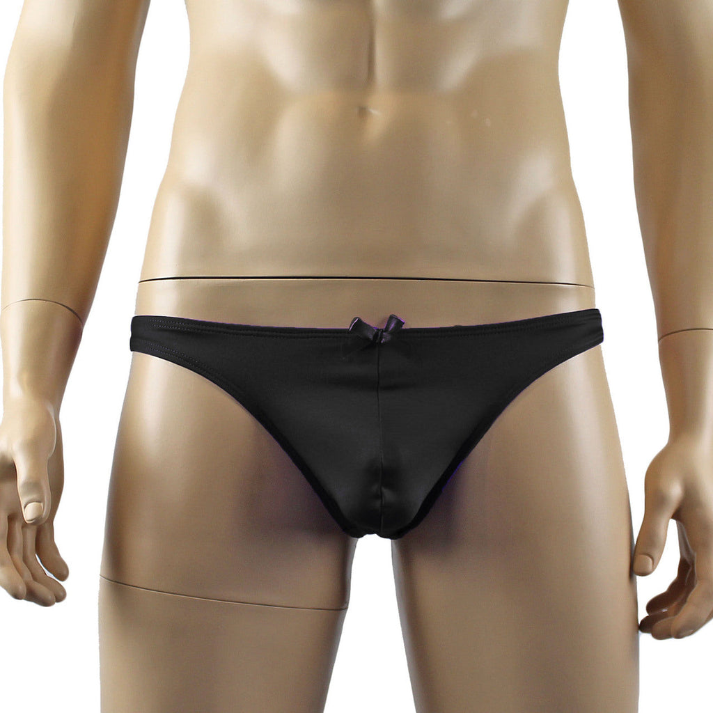 Male Angel Lingerie Stretch Spandex Thong with Bow Black