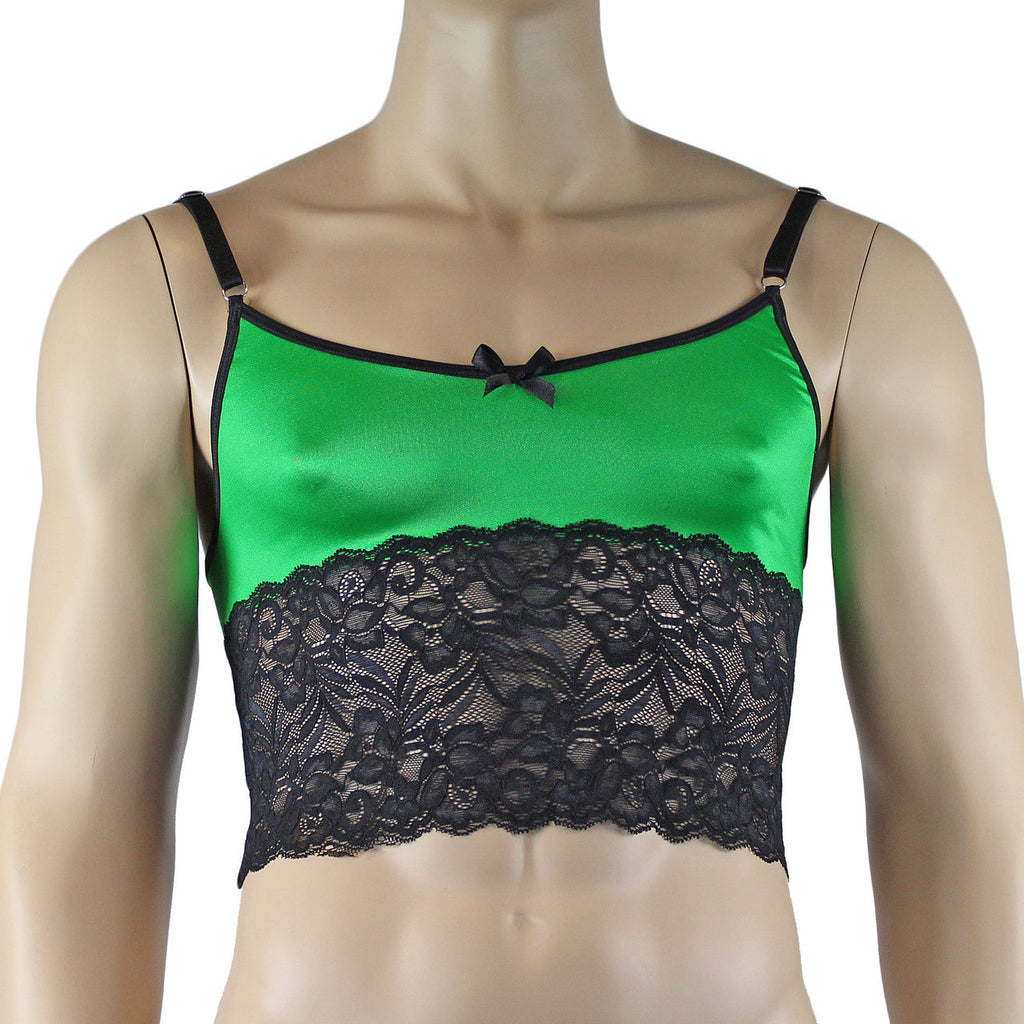 Mens Risque Camisole Bra Top with Wide Lace Trim Green and Black Lace