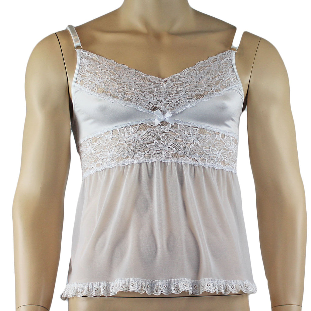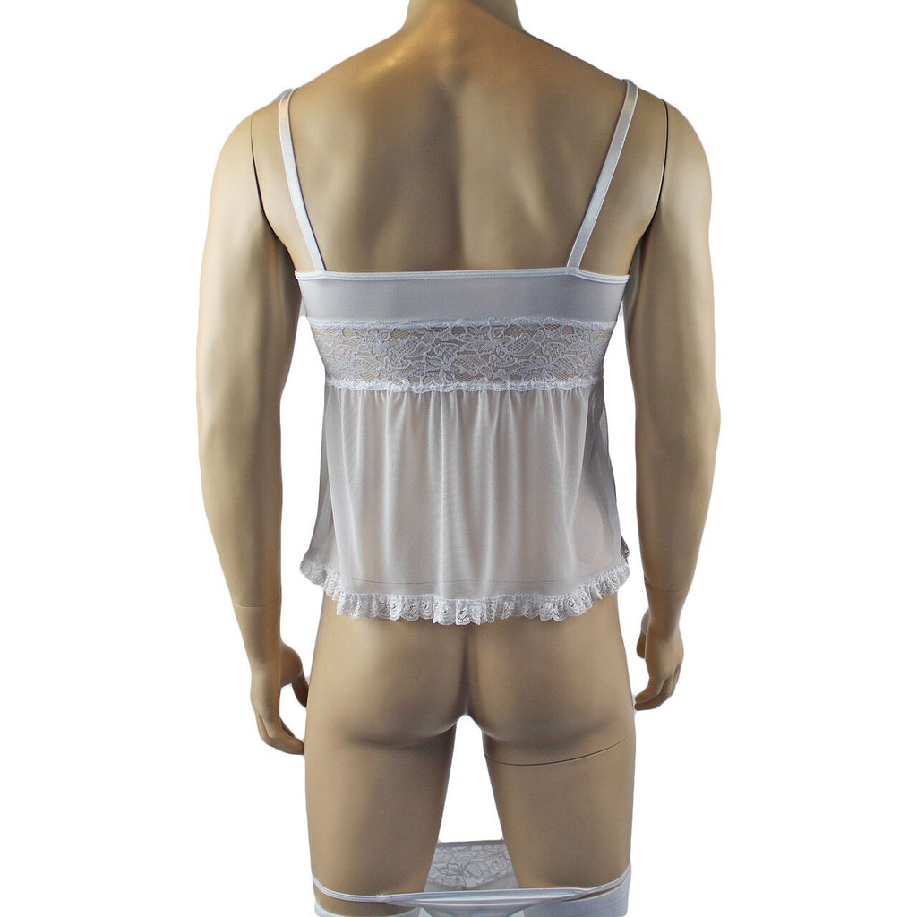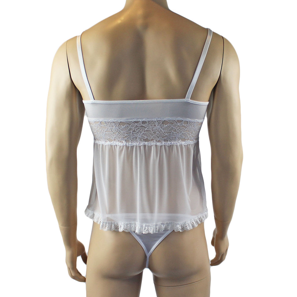 Male Romance Stretch Spandex Mini Babydoll Camisole & G string for Lingerie Men White or Black