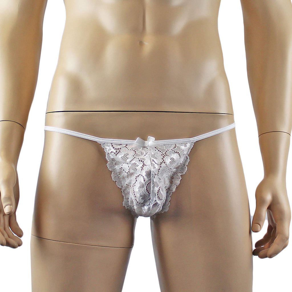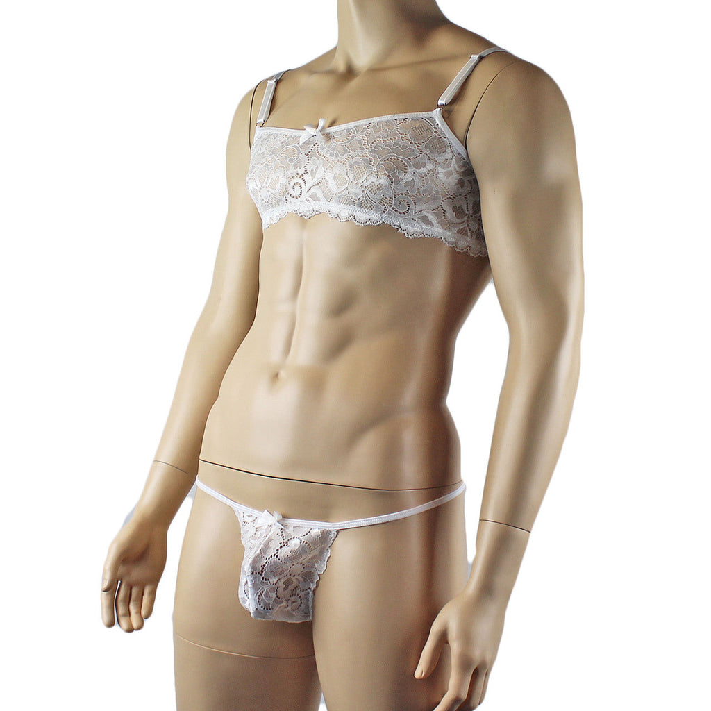 Mens Sweetheart Scalloped Shiny Lace Bra Top and G string White