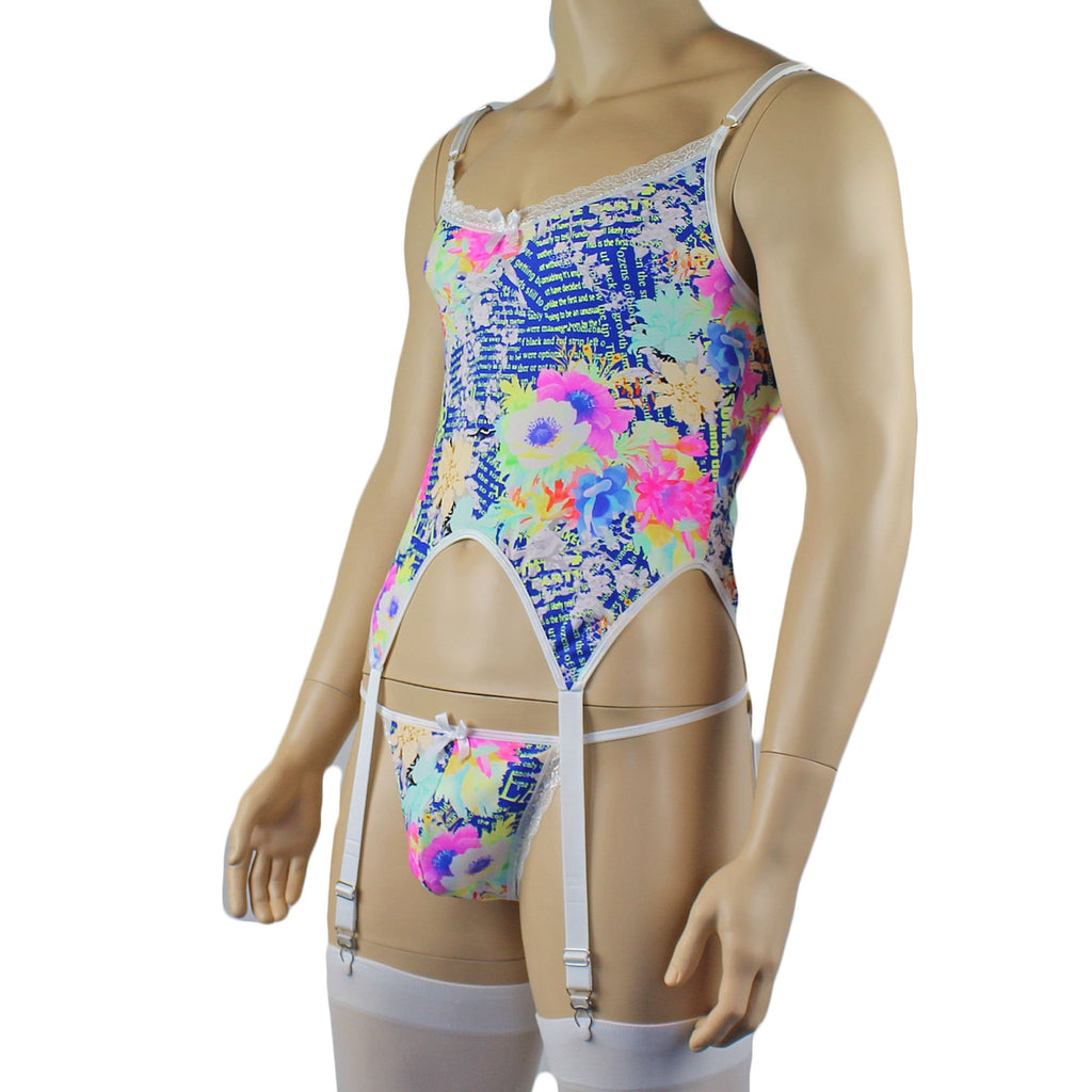 Mens Suzanne Floral Torso Corset Top, G string & Stockings